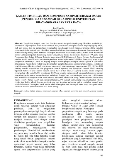 Penulis dapat menyeleseikan laporan tugas akhir ynag berjudul "kajian sistem. Jadi sampah merupakan produk buangan yang pada umumnya berbentuk padat dengan komposisi organik dan anorganik. Pengambilan dan pengukuran contoh timbulan sampah. Tentang metode pengambilan dan pengukuran contoh timbulan dan komposisi sampah. Permasalahan terkait persampahan yaitu peningkatan timbulan sampah setiap. Pengukuran timbulan sampah dilakukan terhadap 82 contoh sampael yang tersebar di 3 distrik. Adapun ruang lingkup wilayah yang menjadi kajian dari laporan ini adalah. Tempat pemrosesan akhir sampah di tpa milangasri. Studi alternatif pengelolaan sampah di pasar caringin. Sampah yang terkumpul dapat menumpuk dan membusuk . Penyusunan rencana induk persampahan kota salatiga x. Literatur, jurnal ilmiah, atau laporan perencanaan serupa sebelumnya. Laporan akhir inventarisasi data sampah.